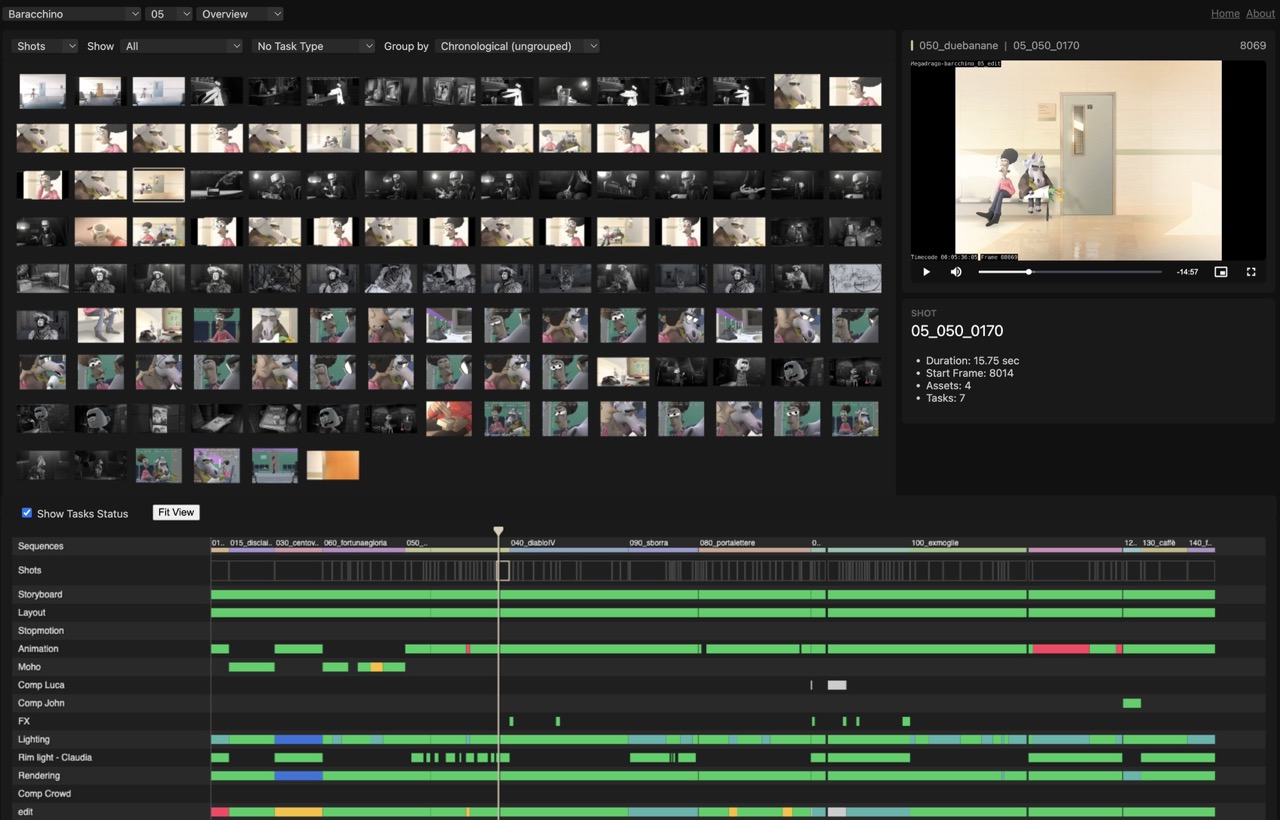 • Kitsu (and the Blender Kitsu add-on) to keep track of all production tasks, from early story reels to final renders.
