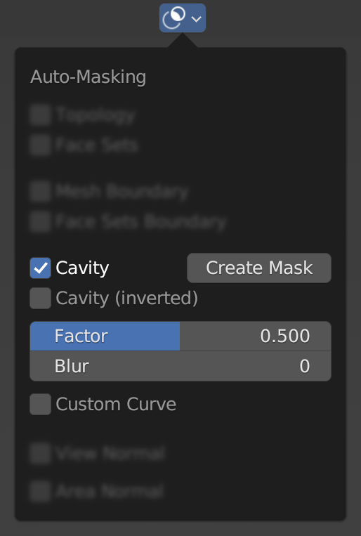 Instead of manually creating a cavity mask, this auto-masking option provides a faster way of painting and sculpting with Cavity.