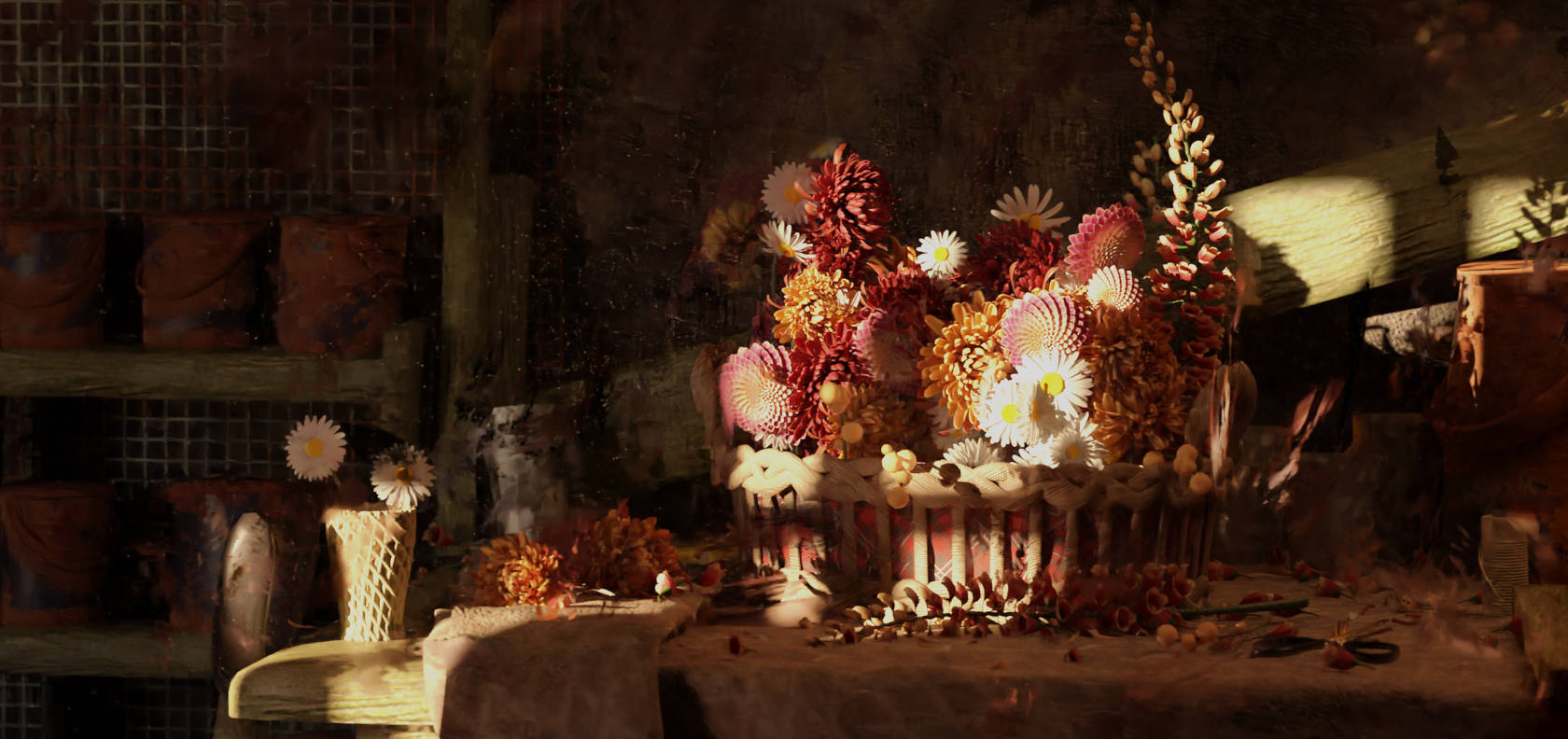 Blender 2.93 splash and interline images by Erindale Woodford. Geometry Nodes building by Felipe del Rio. Sculpt Mask demo by Julien Kaspar. LineArt artwork by Yiming Wu. Grease Pencil Fill demo by Tuatea Schmidt. Eevee DoF demo by Eris Snail. Eevee DoF Kitchen demo by Joni Mercado. Eevee Smoke by Clément Foucault. Cycles angle spread artwork by Juan Gea Rodriguez.