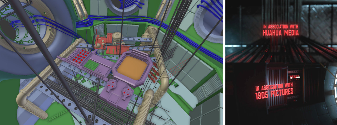 This was one of the environments I got to develop from start to finish. It was a mix of kitbashing and modeling in Blender. The whole process only took me an afternoon to finish because I was able to quickly duplicate the pieces and fill in the space. This scene was also repurposed in different shots throughout the sequence.