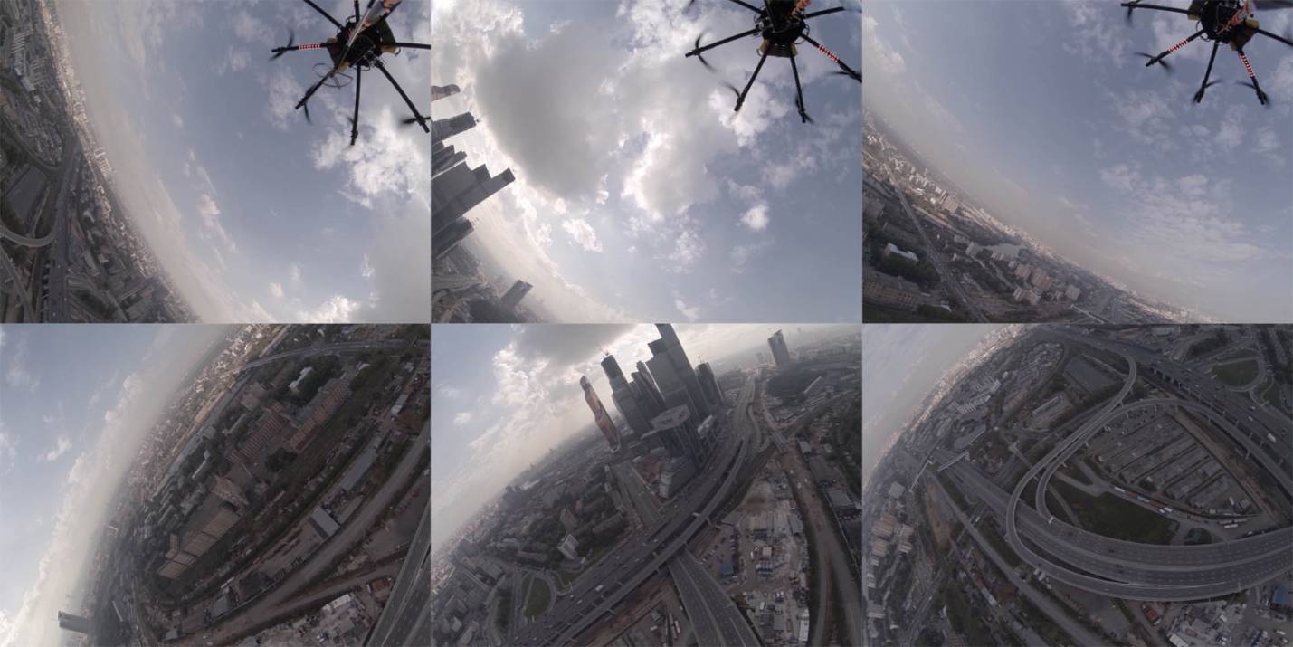 The highest building in the Moscow City complex is 374 meters tall. The drone couldn’t ascend higher than that, and I have needed to make the feeling of much greater height.