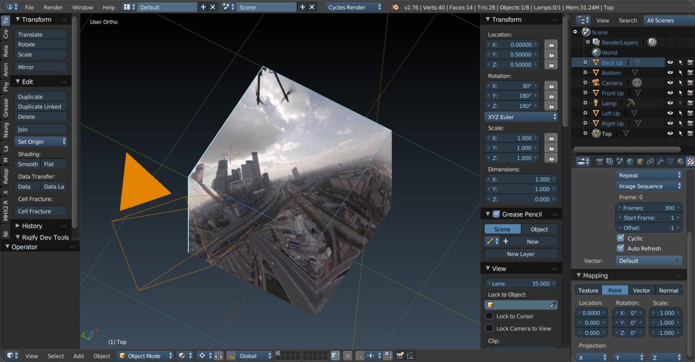 We have filmed the city with 360 degrees shooting using drone with 6-GoPro box. It was simpler.
