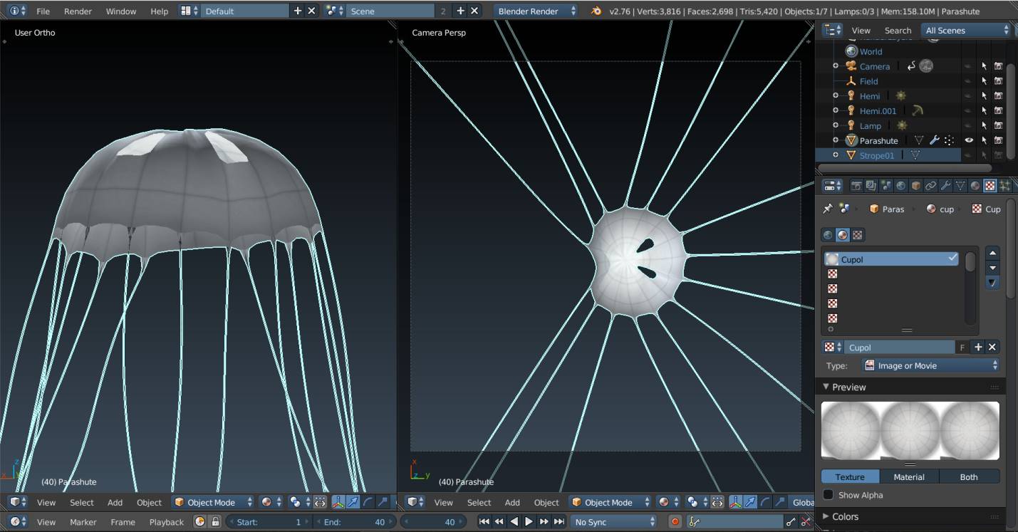 Finally, I’ve needed to create and animate a parachute.